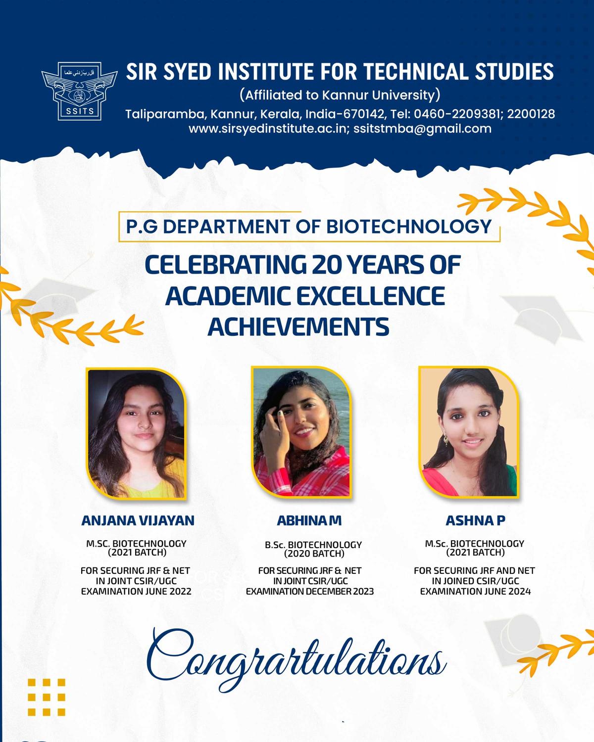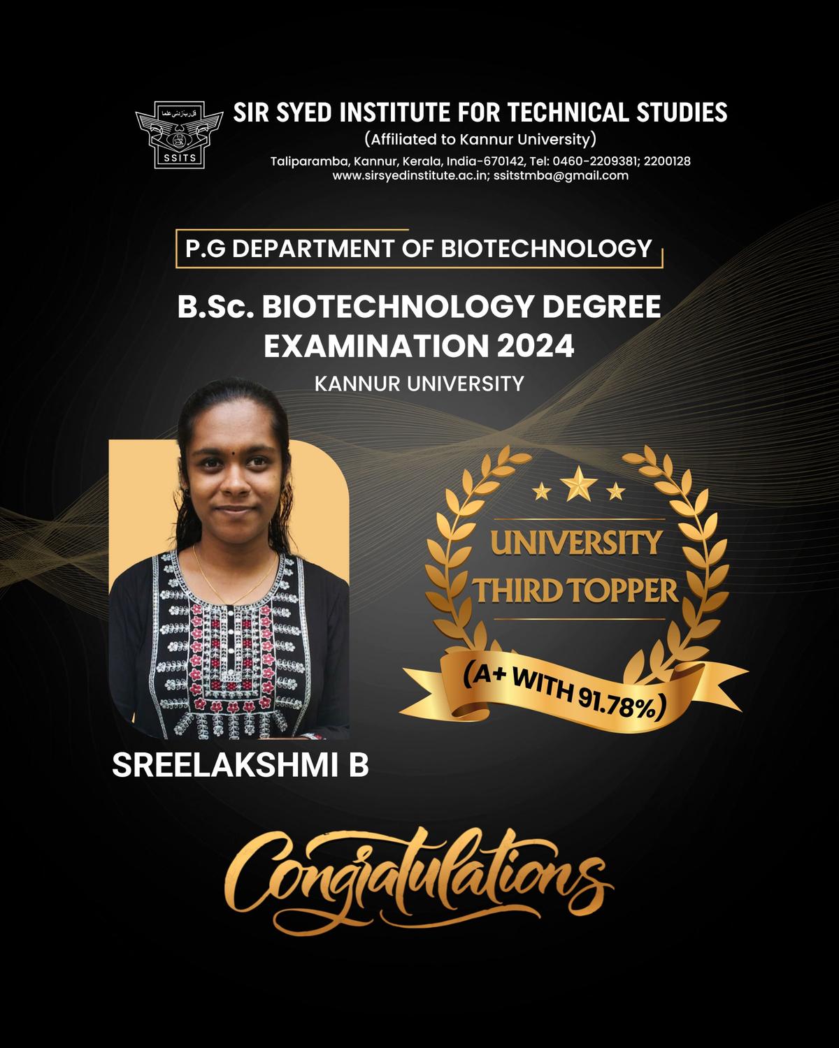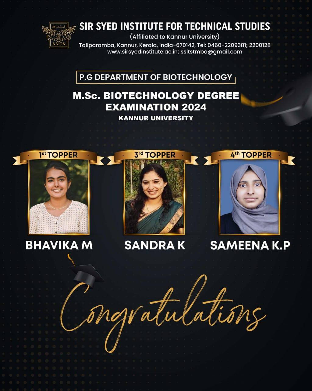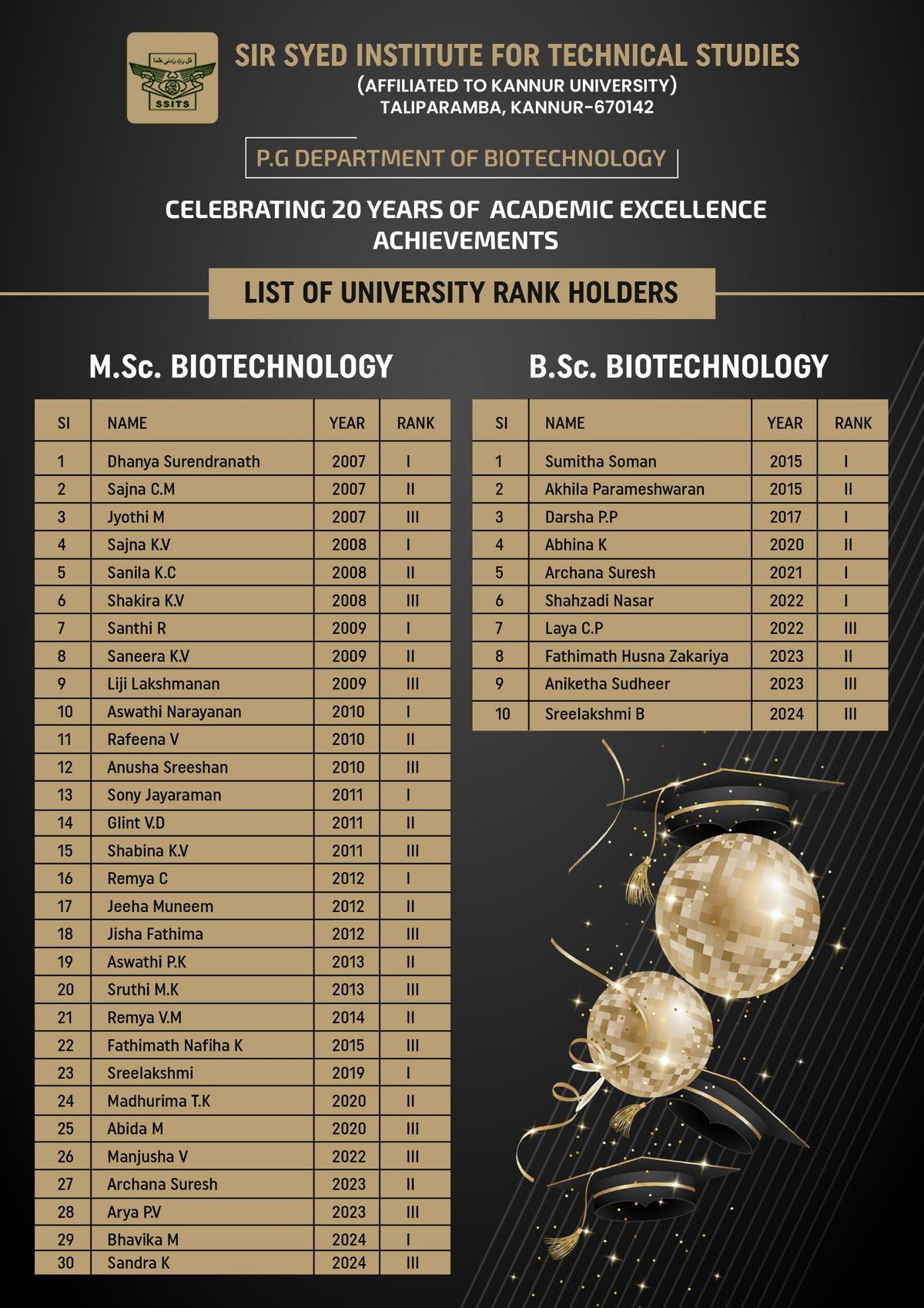 MSc BIOTECHNOLOGY I AND III RANK HOLDERS 2024